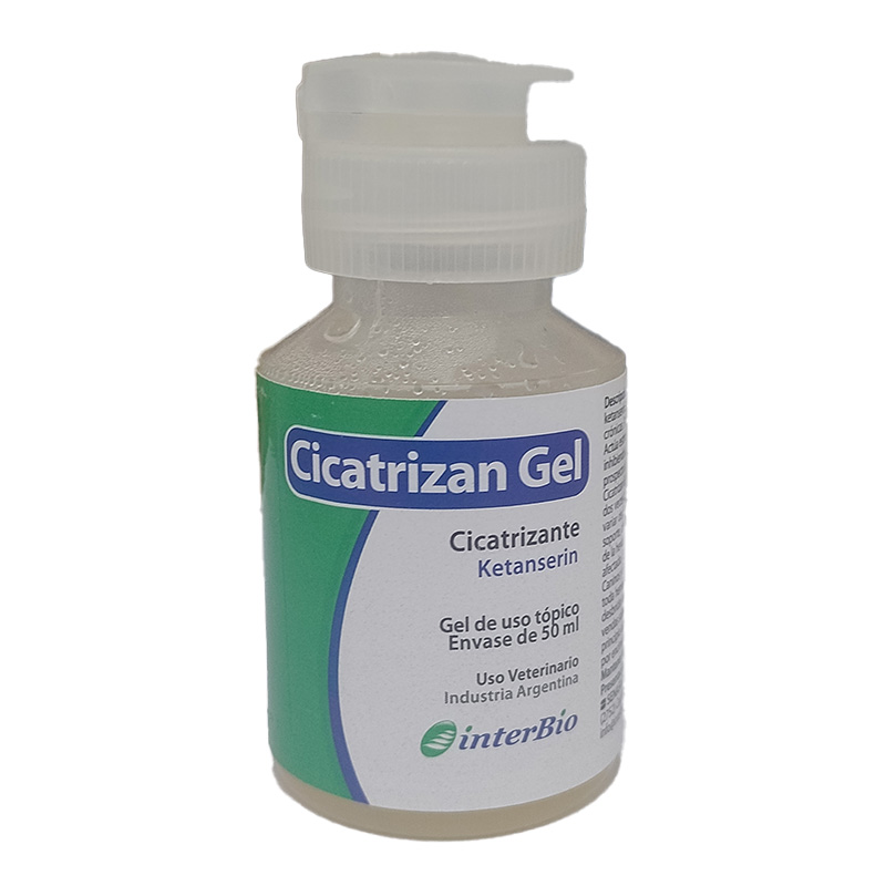 Ketanserin es un potente antagonista selectivo de los receptores S2 serotonínicos. Tiene además un suave efecto antagonista sobre los receptores alfa, adrenérgicos, H1 histamínicos y D2 dopamínicos. Las propiedades cicatrizantes de Cicatrizan gel se basan en su efecto antiserotonínico: a través del antagonismo de la vasoconstricción inducida por la serotonina, de la agregación plaquetaria, y la subsecuente liberación de mediadores, y a través del antagonismo al aumento en la permeabilidad de la pared vascular inducida por la serotonina, se obtiene una mejor microcirculación y aporte de oxígeno a la herida. Además, Cicatrizan gel previene la formación excesivo tejido de granulación, presumiblemente a través de la prevención de la agregación plaquetaria y la consecuente liberación de factores de crecimiento, de la reducción de la extravasación de macromoléculas sanguíneas y de la inhibición de la actividad de factores de crecimiento de la serotonina sobre los miofibroblastos.